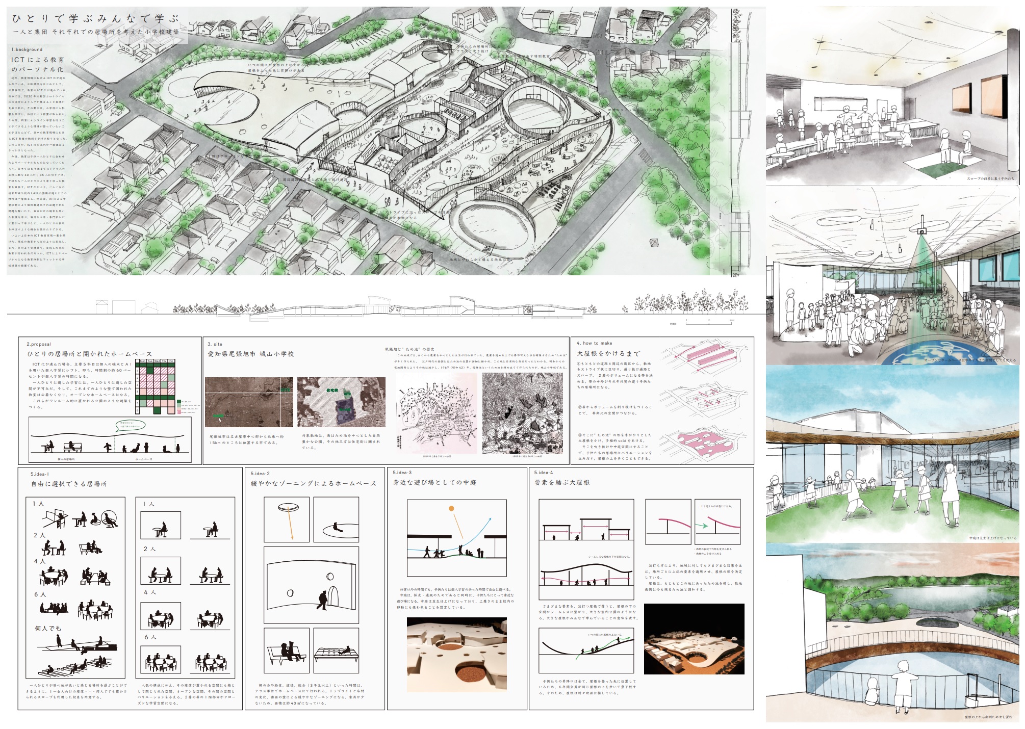 山本さゆり「ひとりで学ぶみんなで学ぶ -一人と集団 それぞれでの居場所を考 えた小学校建築-」