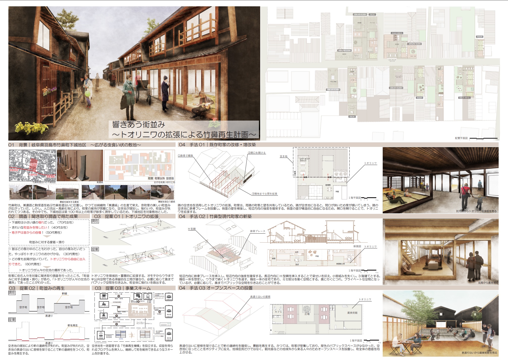 米田直泰「響きあう街並み -トオリニワの拡張による竹鼻再生計画-」